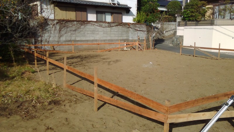 新築工事では、地縄と言って地面に建物の位置を