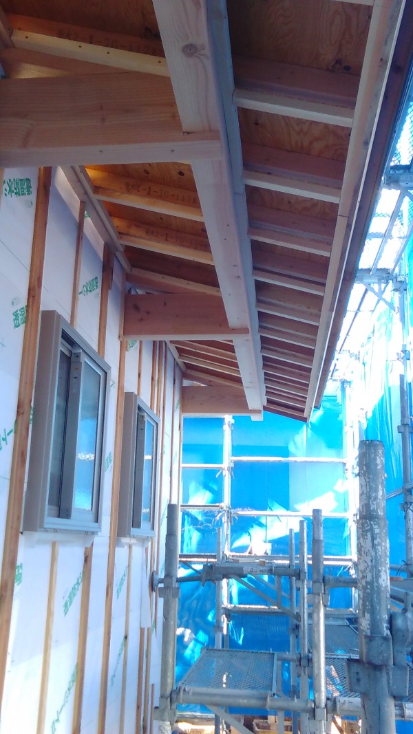これが完了しましたら早速軒天材を貼っていきます。