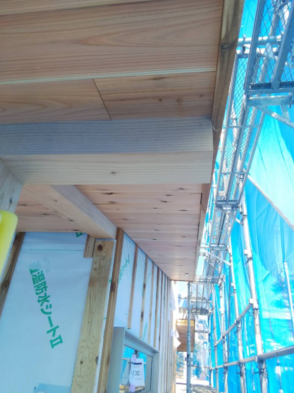 1階の軒天は2階と異なり、板張りを行います。