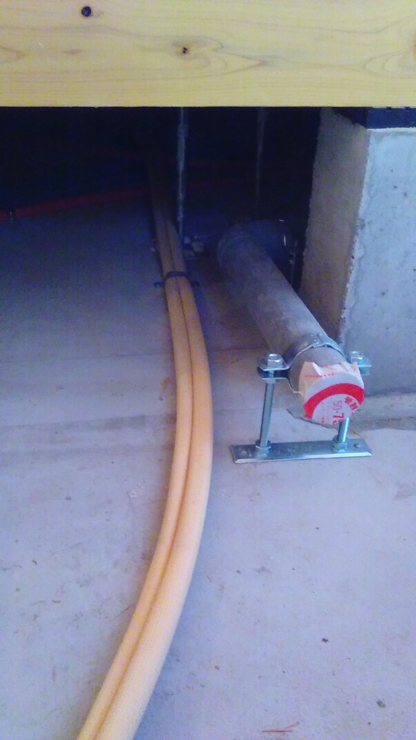 床下に転がしてある給排水管を