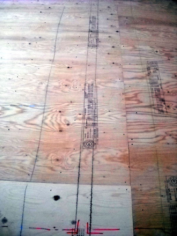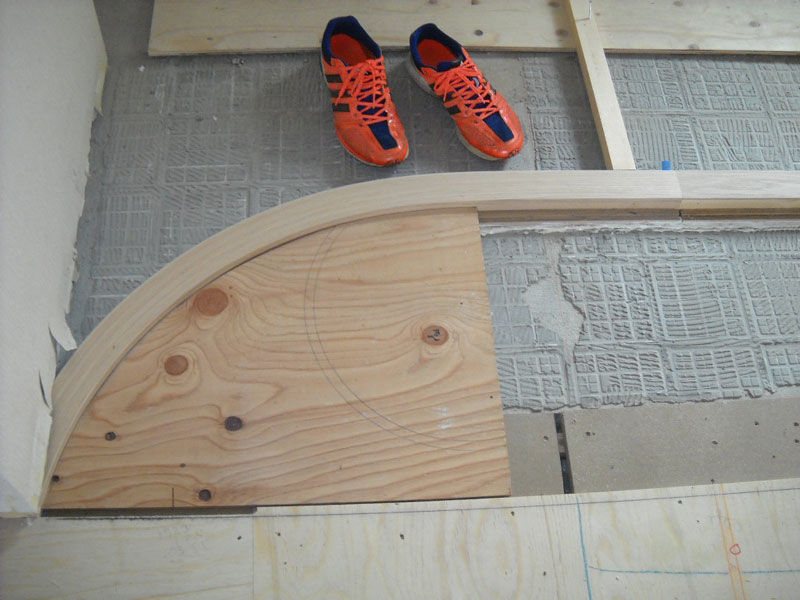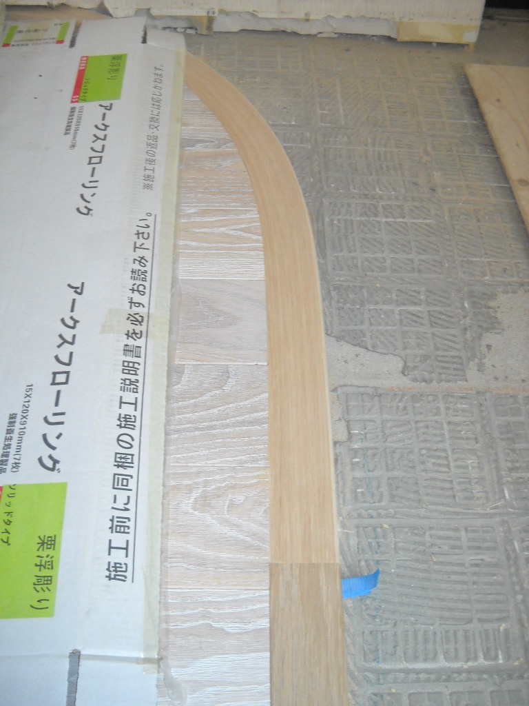 床を貼りながらR壁の下地も同時進行で進めます。