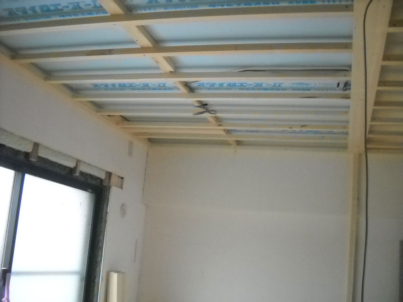 一部北側の天井の下地には先行して、