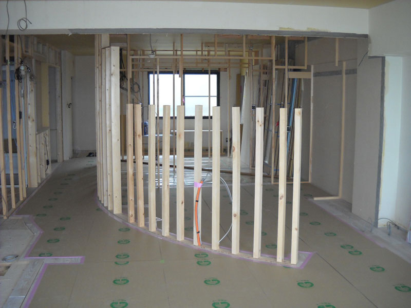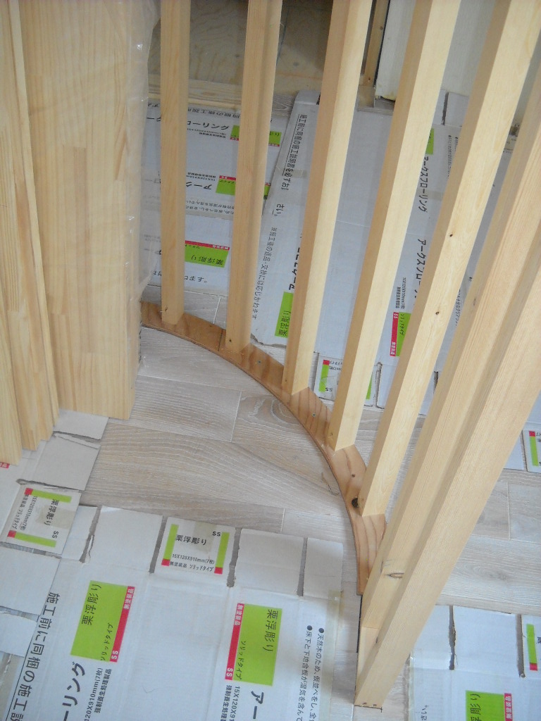 こちらは床を貼った上にR壁の下地を作っています。