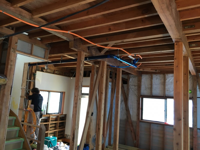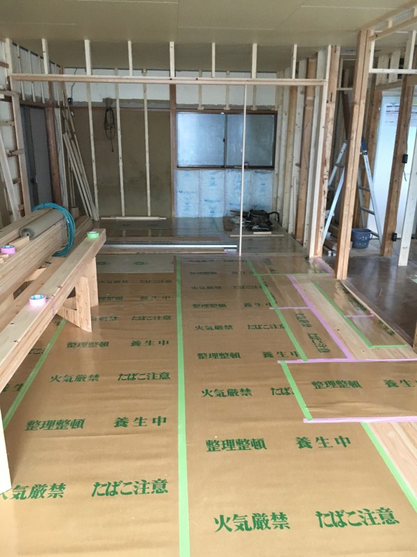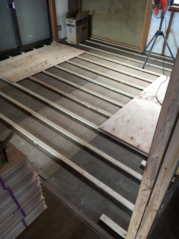 まずは構造補強や床の下地組みを行います。