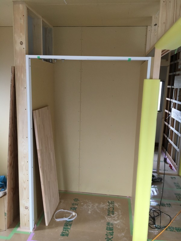 現地は、建具枠が取り付けられました。