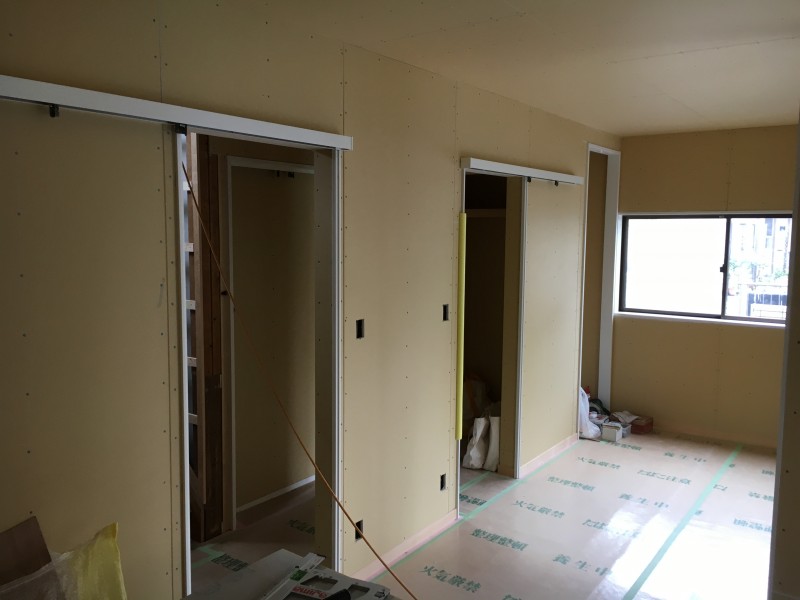 内部は、天井や間仕切り壁の石膏ボードと