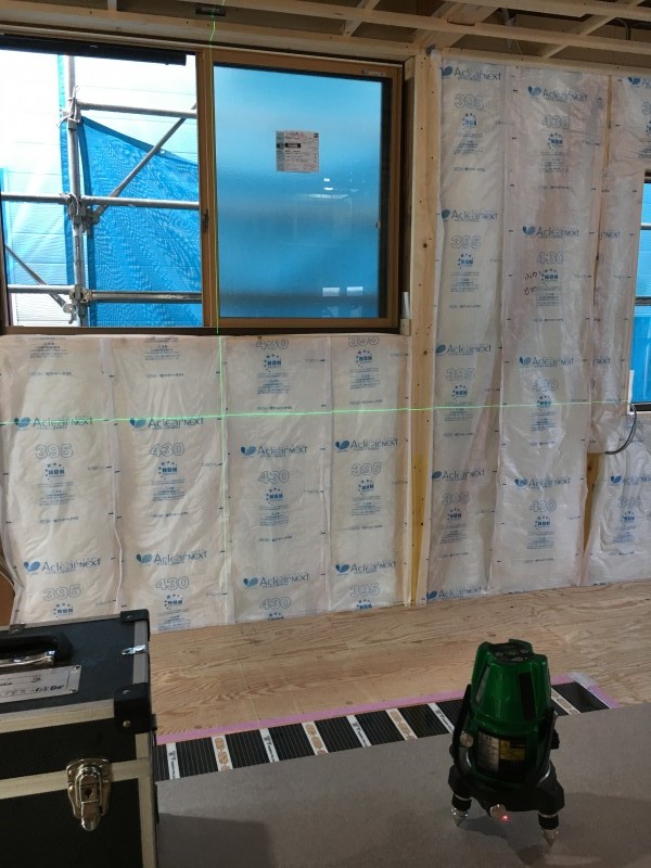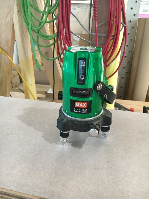 レーザーと呼ばれる機械で水平垂直を確認して、
