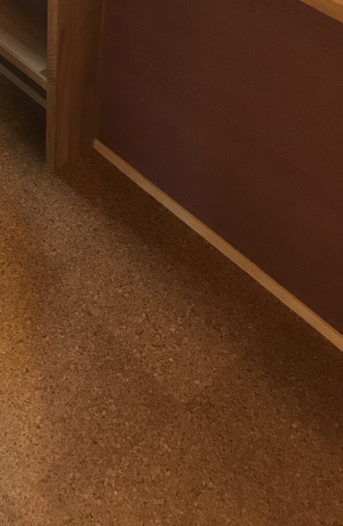 コルクタイルは柔らかさが特徴の素材です。フローリングと同じようにウレタン塗装系と自然素材系の両方の表面仕上げがあり、素地(無塗装)のものもあります。仕上げ材によりお手入れが変わります。素地部分は水分には弱い面があります。また、熱にはそれほど強くない素材です。
