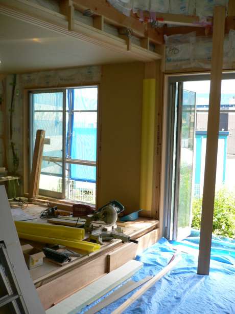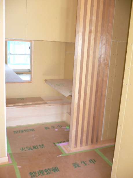 後日、大工さんが取付た材料と家具を家具屋さんが繋いでいきます。