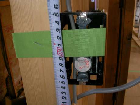 続いて、電気配線工事が完了したので、位置、高さの確認をします。