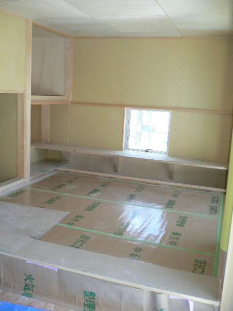 またまた、大工さんの頑張りが現れる天井ボードの施工。
