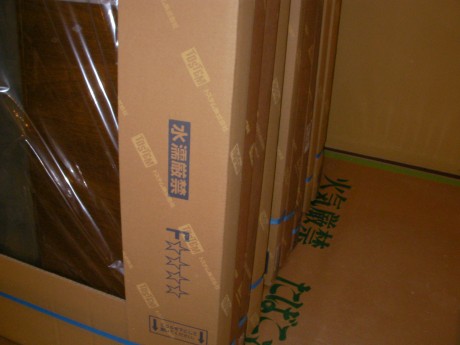 建具の枠が取り付けられた後は、傷防止のために養生をします。