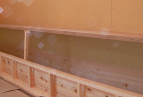 壁の石膏ボードを先行で貼っていますので、ビスの間隔のチェックなどを行います。
