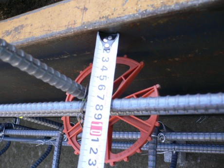 ここでもまた、鉄筋のかぶり厚のチェックを行います。