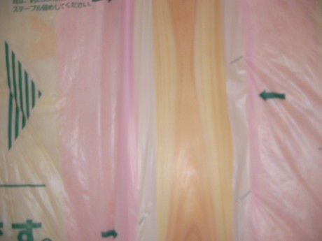 壁の断熱材は耳と呼ばれる部分がしっかりと柱に止められているか確認します。