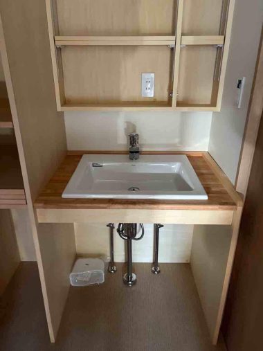 洗面カウンターは造作で