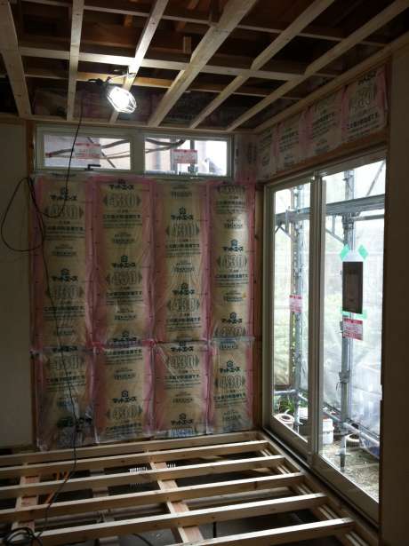 この下地のおかげで根太の間に入れる断熱材はきれいにおさめられます。