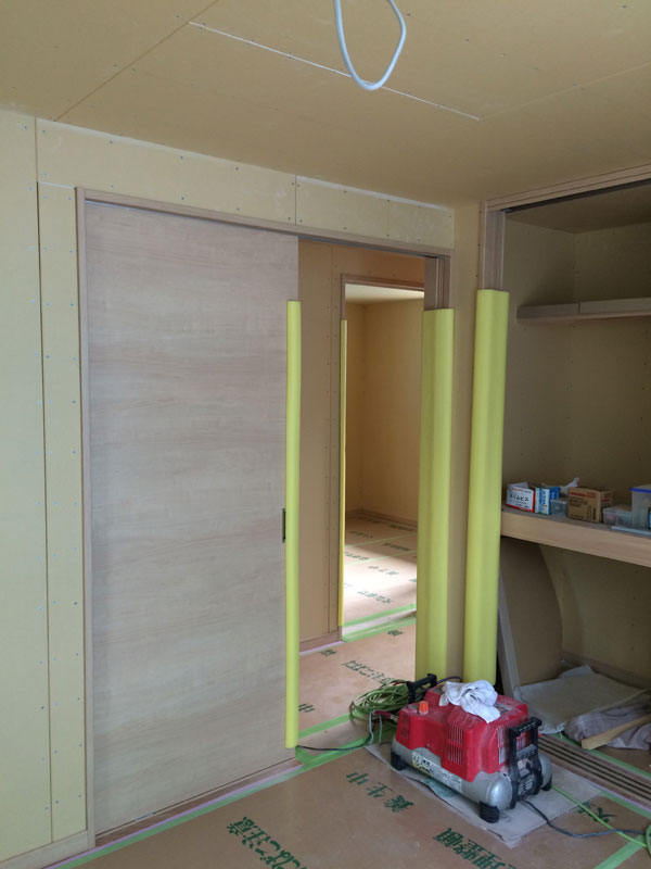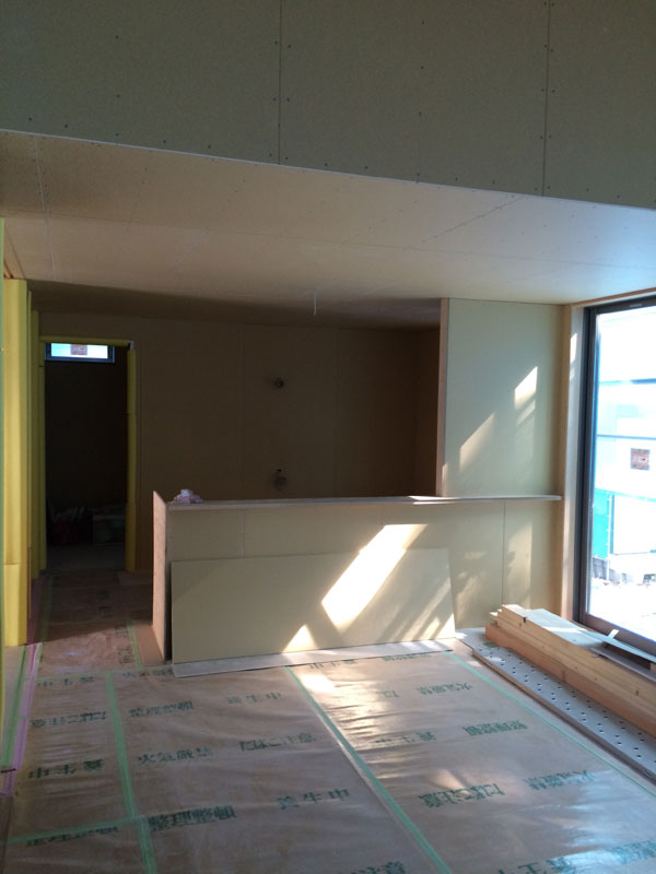 そして、内部では造作工事と同時に、ボード張り工事を進めました。