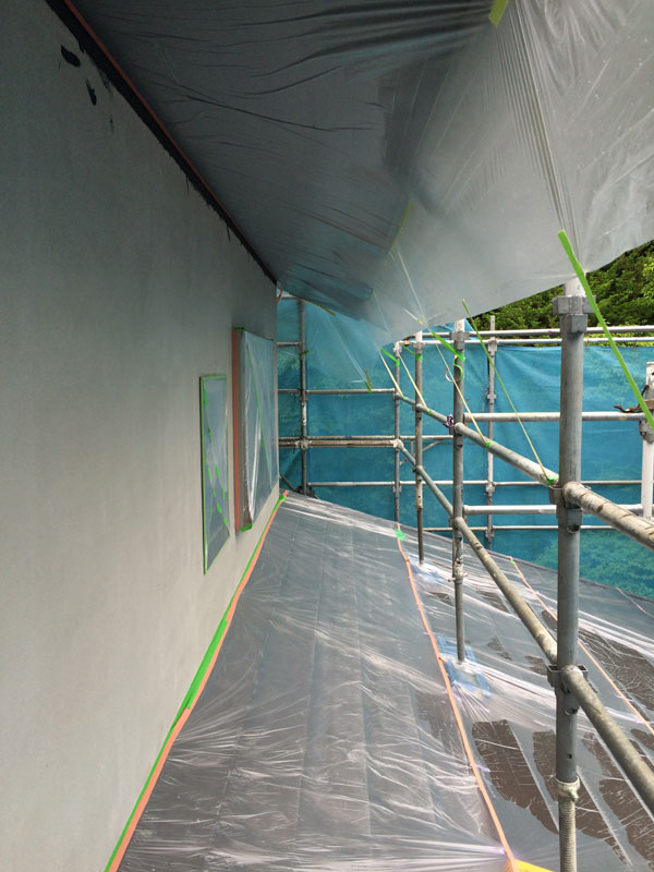 建具・サッシ廻りや屋根・軒裏など取り合う部分の養生を進めます。