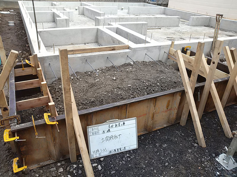 基礎工事が最終段階となって参りました。 コンクリートの養生期間も終わり、型枠を解体しました。