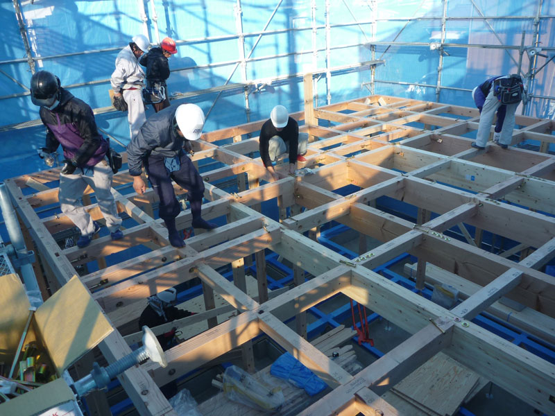 次は、筋違の設置を行い、構造金物の取付を進めて参ります。