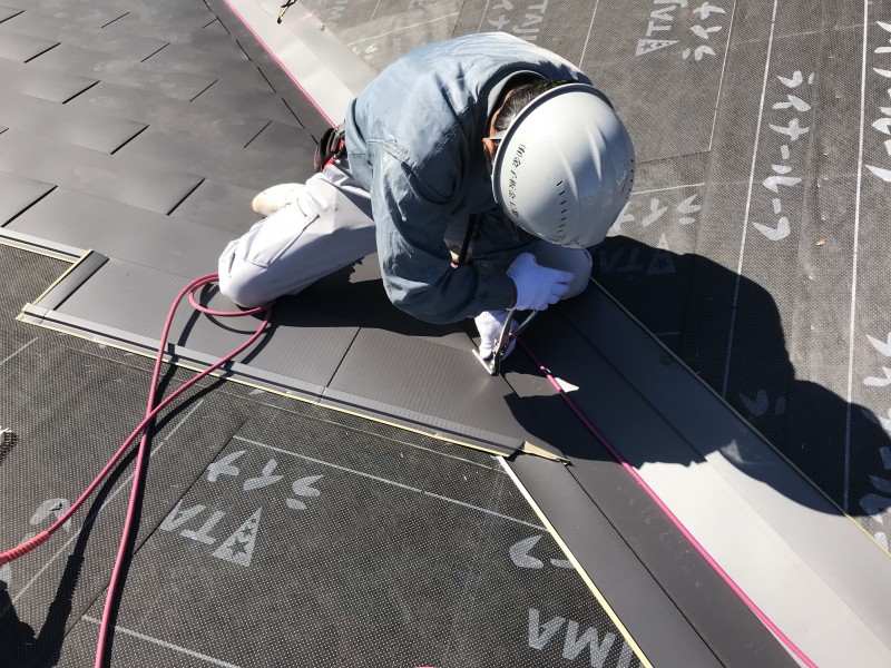 流れるように板金を1枚葺き、