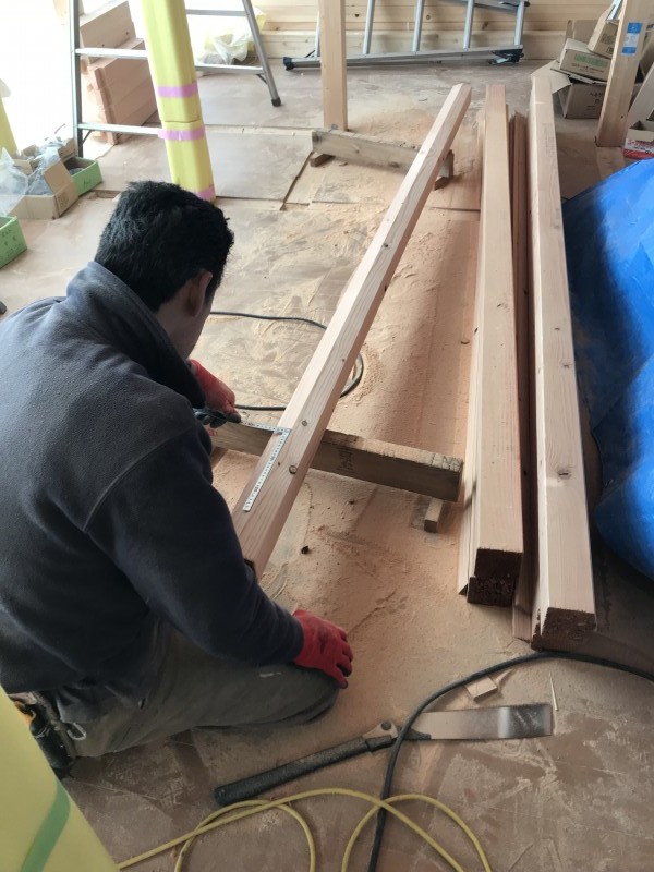 プレカットではなく、現地で手加工して進めました。