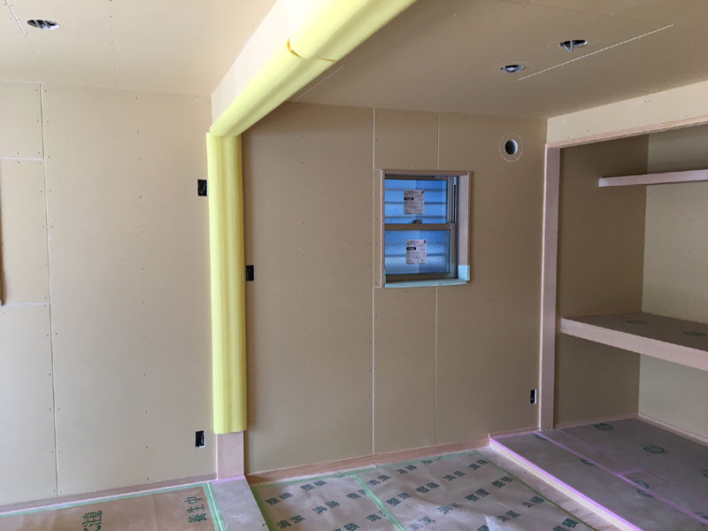 1階の畳コーナーやLDKのボード貼りを進めました。
