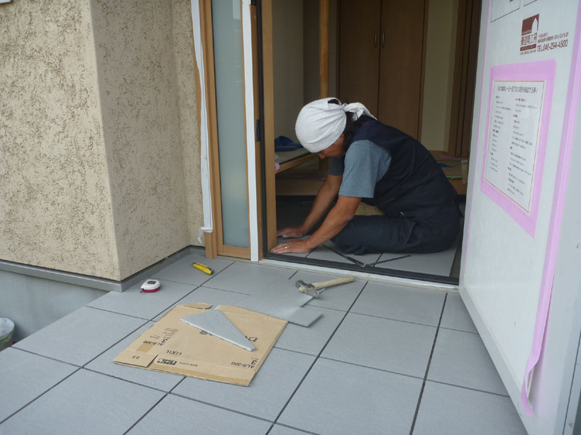 玄関のタイル貼りも行いました。