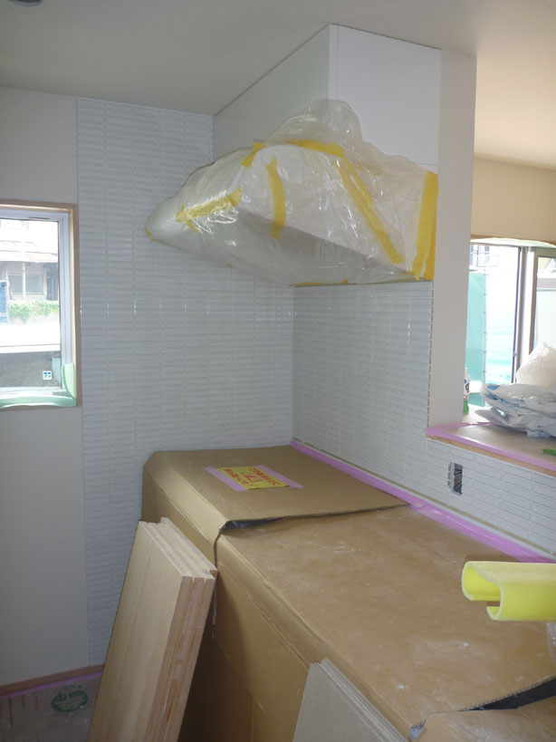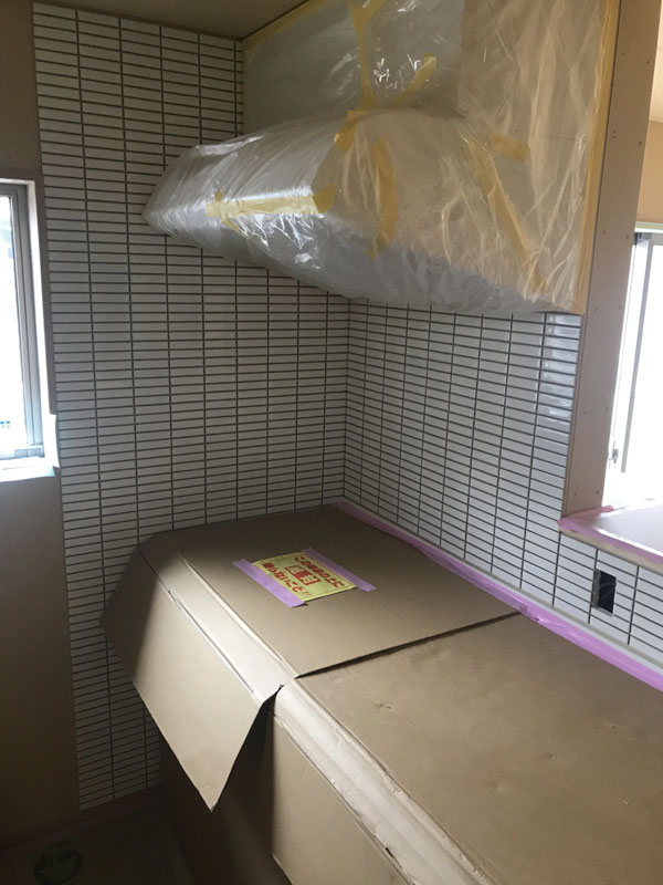 今週は、キッチンのタイル貼りから進めました。