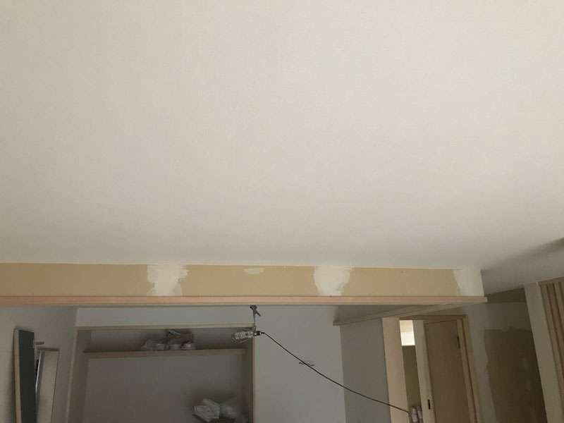 下地処理が終わると、天井からクロス貼りを進めて行きます。