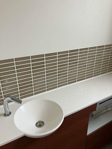 水が跳ねる壁面にはタイルを施工しました。