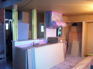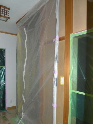 埃などが住居部分へ侵入しないように間仕切り養生を行いました。