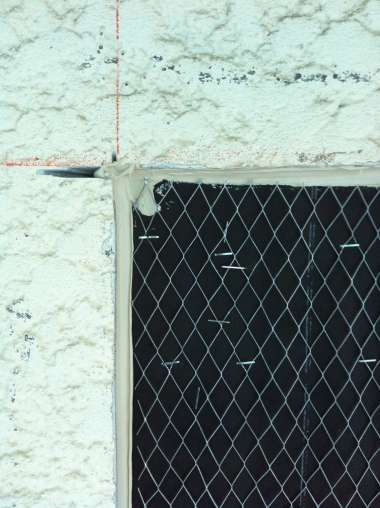 サッシ廻りはモルタル下地にひびが入りやすいため補強をします。