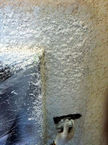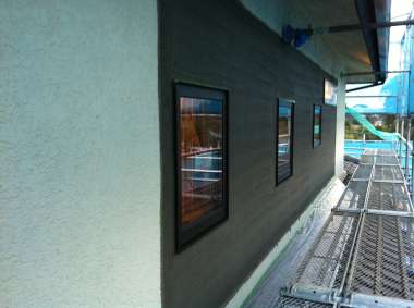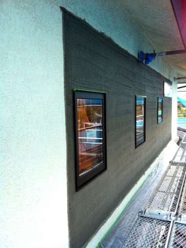 前々回、下地のパタン(外壁の表情)合わせをしておいた外壁を、