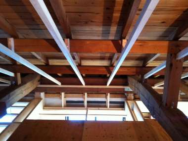 屋根に瓦が載っているため、大きな荷重を担っている小屋組も