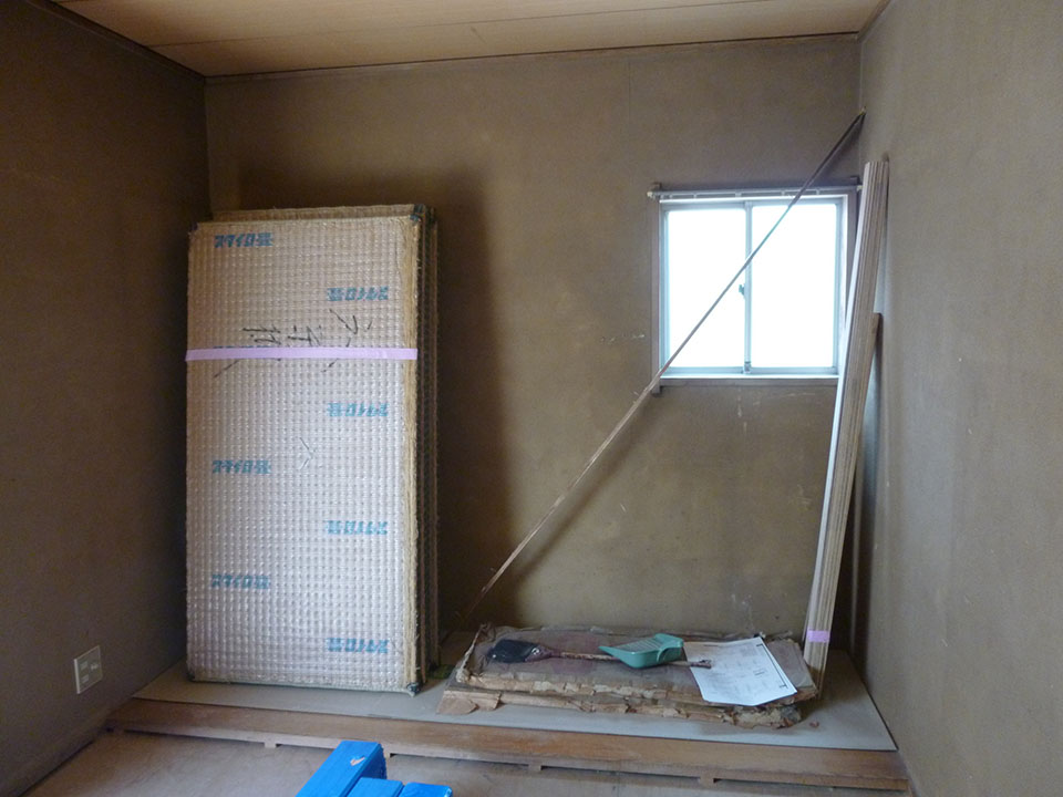 外側は他の壁と一緒に珪藻土で仕上げていく予定です。