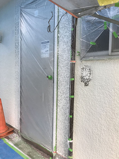 こちらは新規玄関周りの補修吹き。