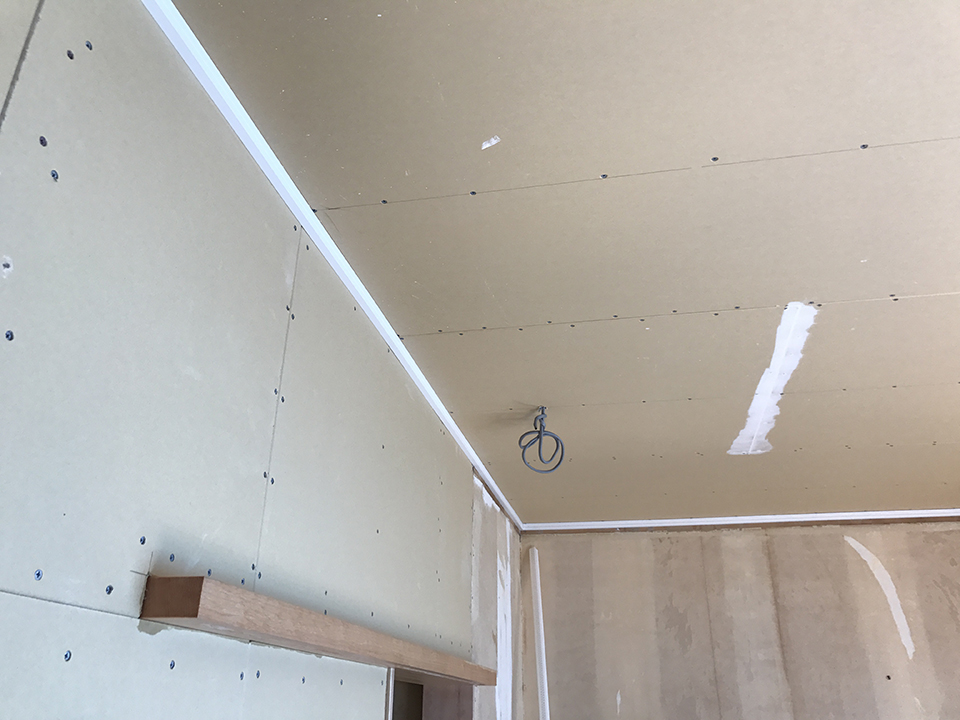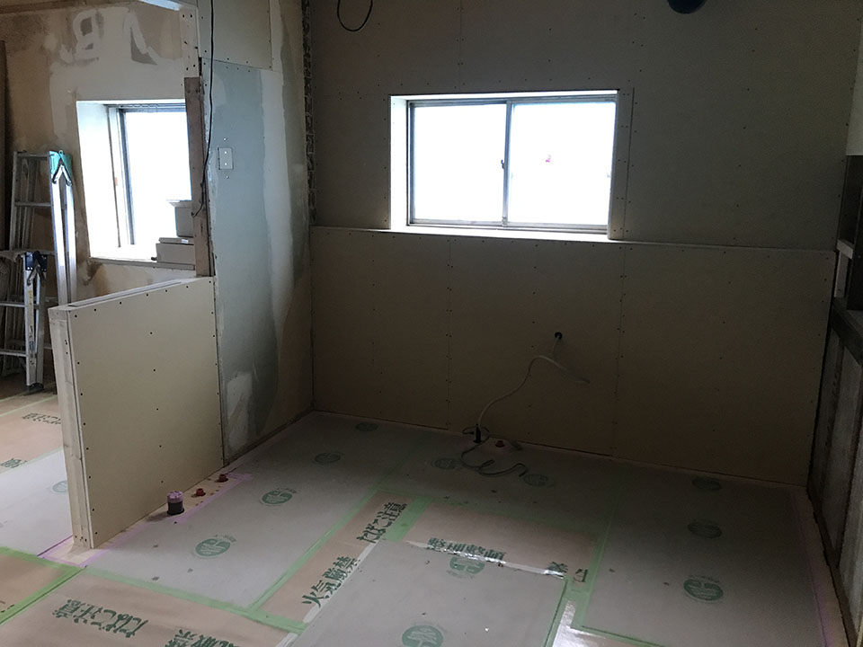 防火のため、設置前に石膏ボードを張ります。