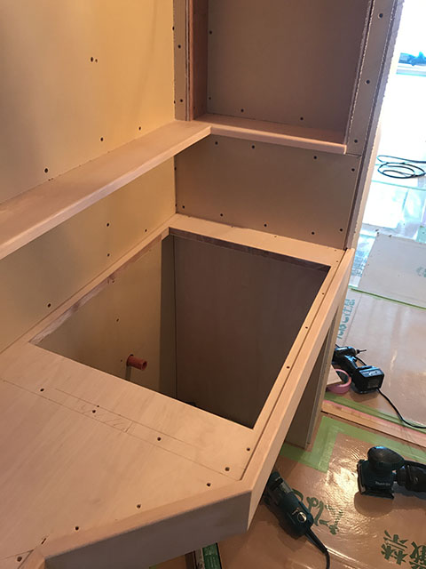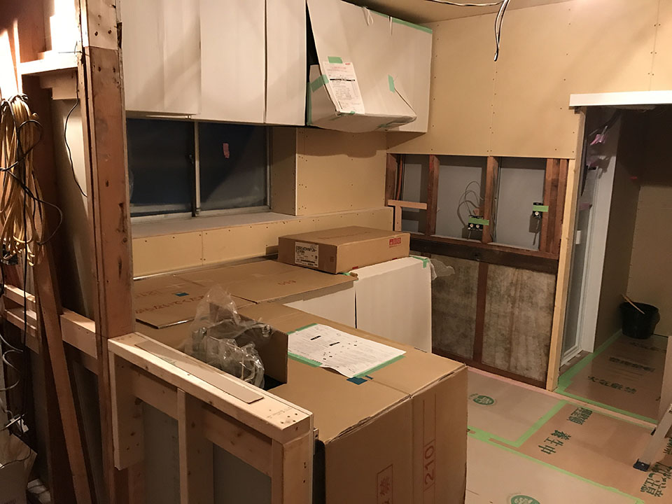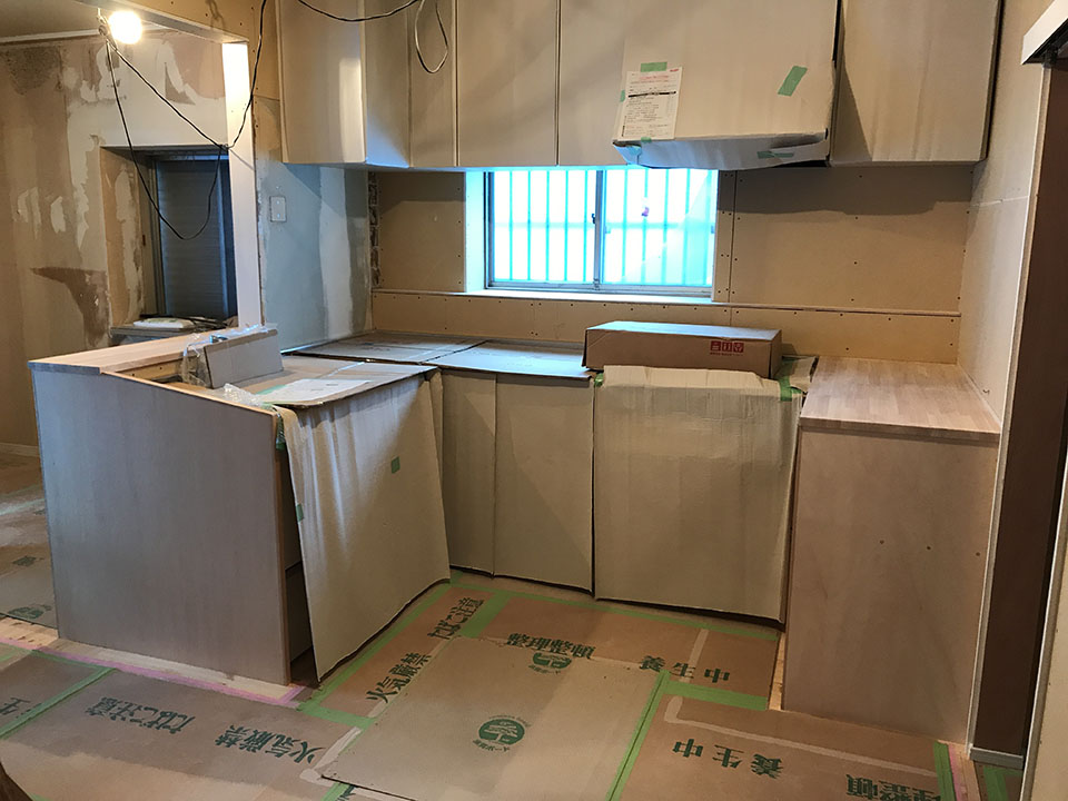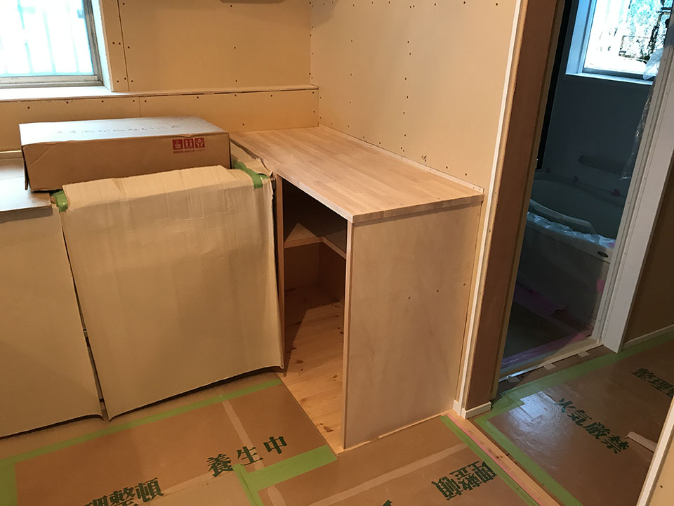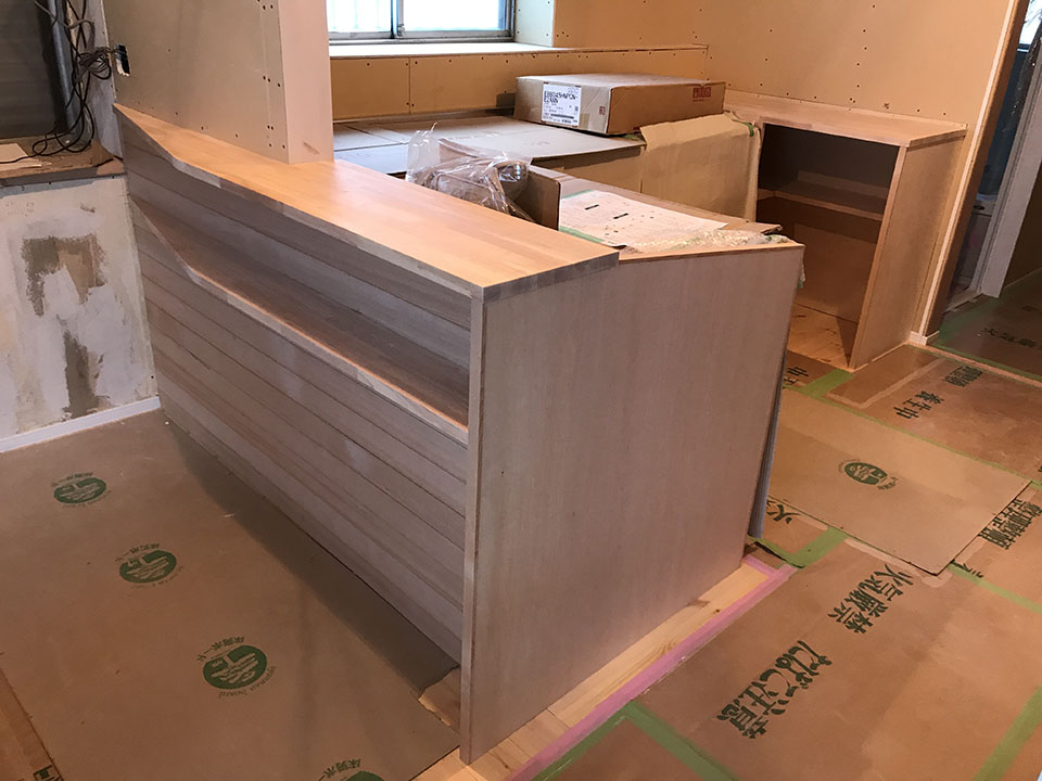 内部はキッチン周りの造作工事も無事に終了しました。
