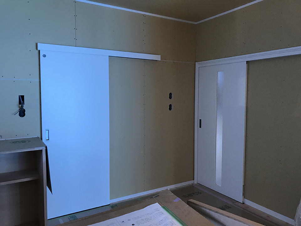 一面が収納建具になりました。