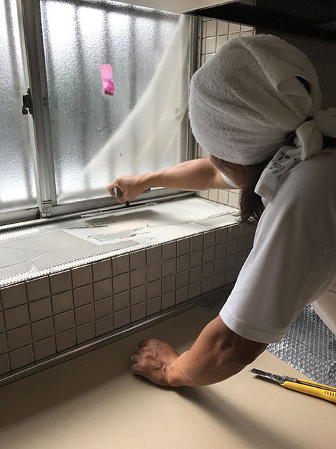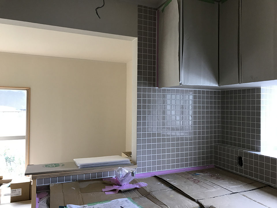 今週は、タイル張りや珪藻土塗りを進めていく予定です。