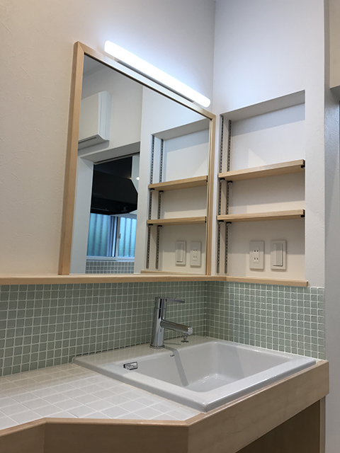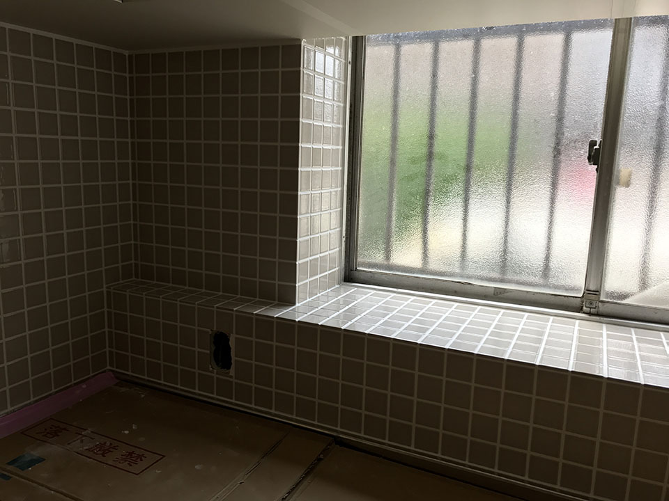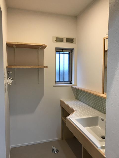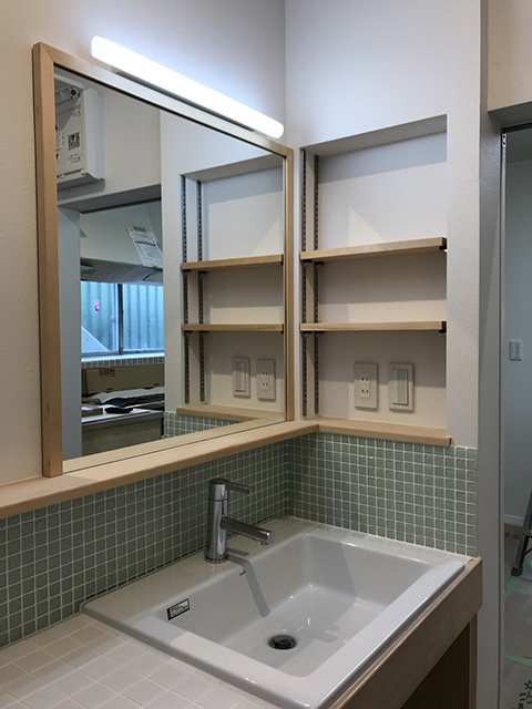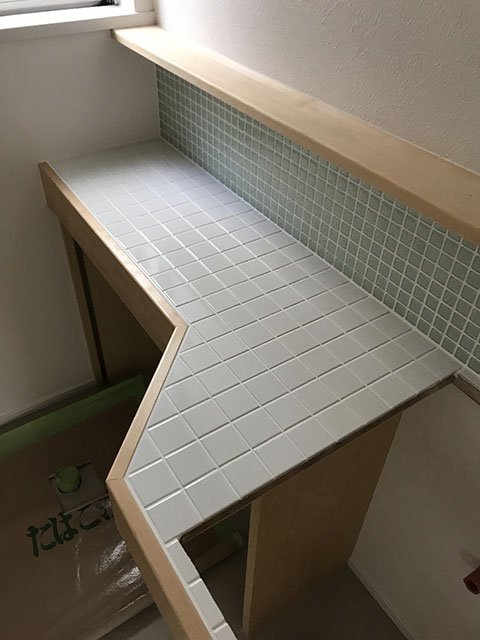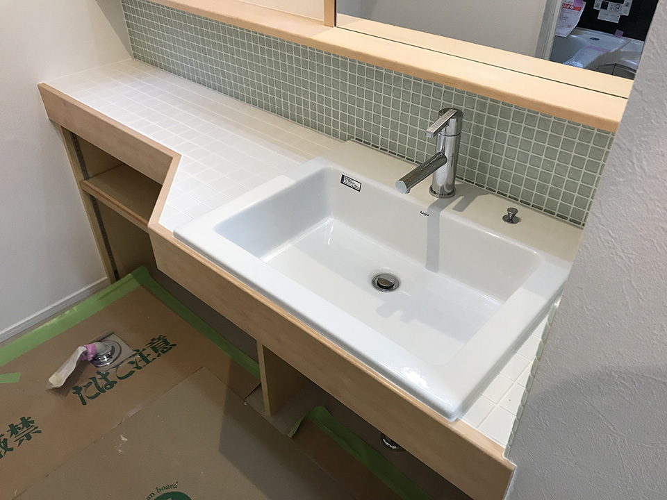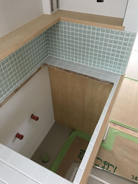 こちらはタイル張りが終わった洗面所