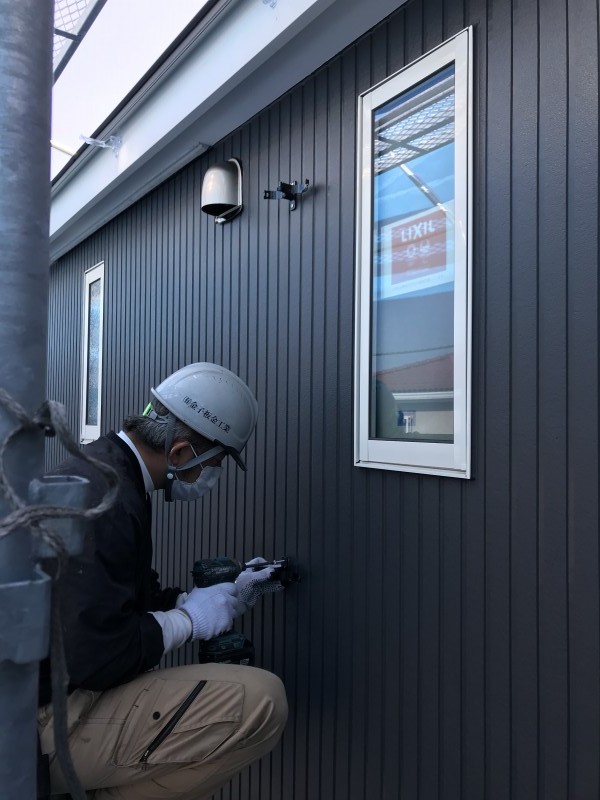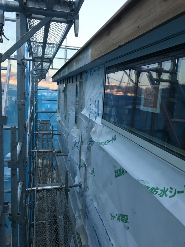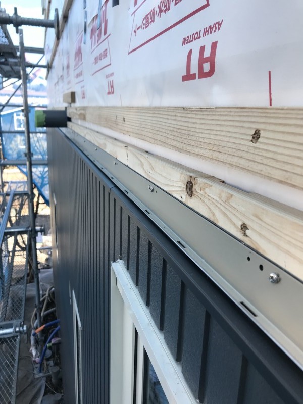 外壁は水切り・胴縁が取付されたところまではご紹介しました。