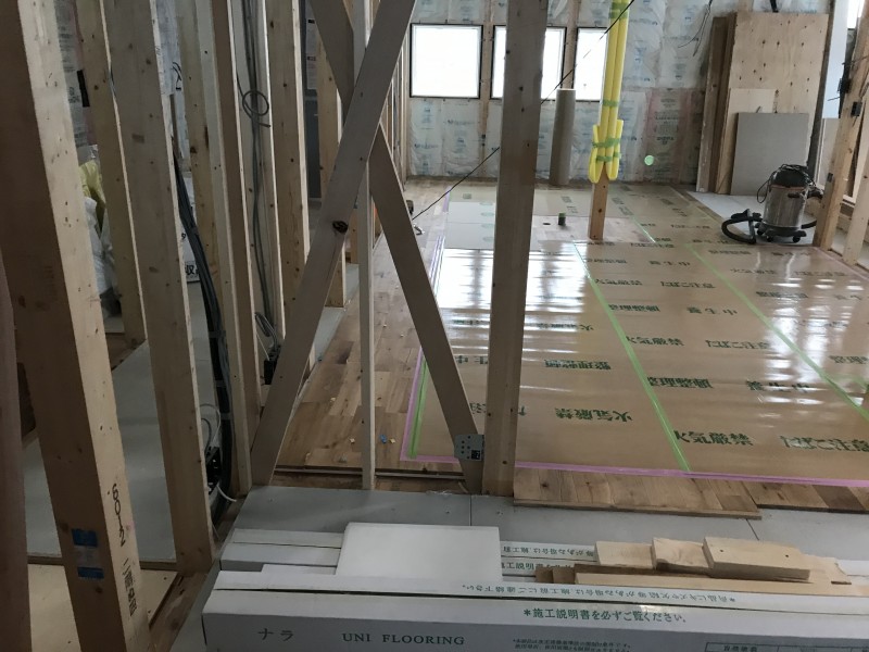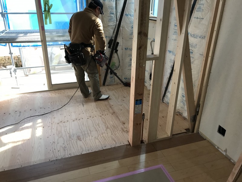 内部は続いてフローリング張りを進めていく予定です。