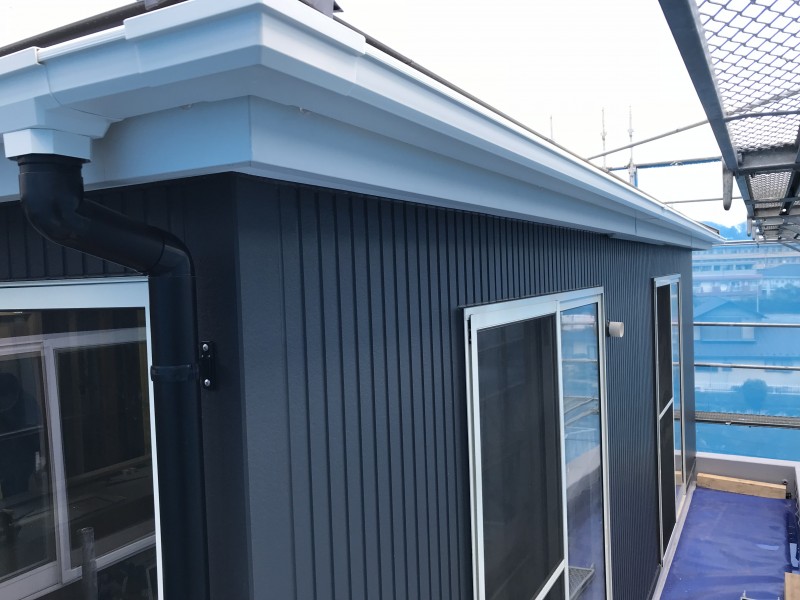 軒樋は破風板金に合わせてホワイト、
