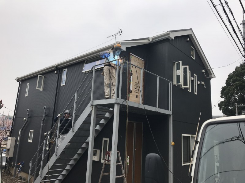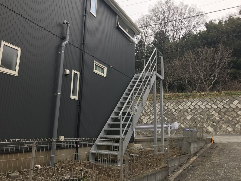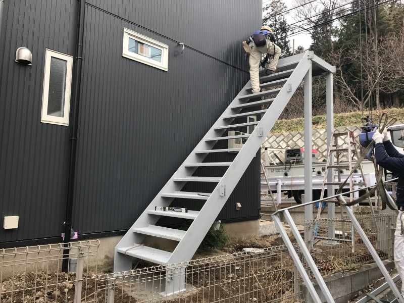 今回は外部鉄骨階段を設置していきます。