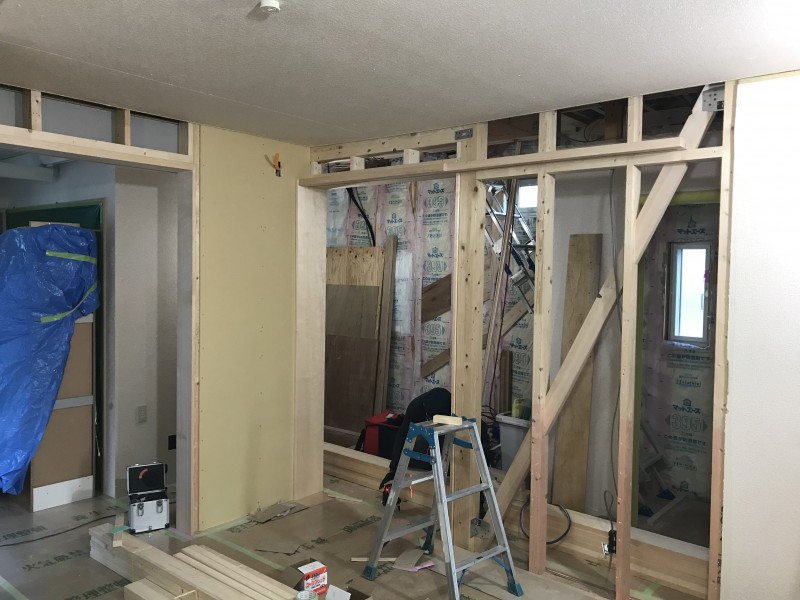 内部は建具枠の取付を終え、
