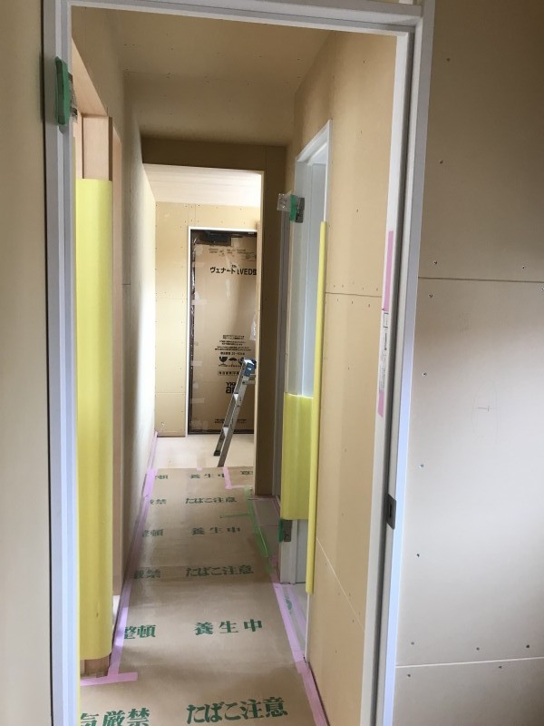 壁の石膏ボード張りを進めました。