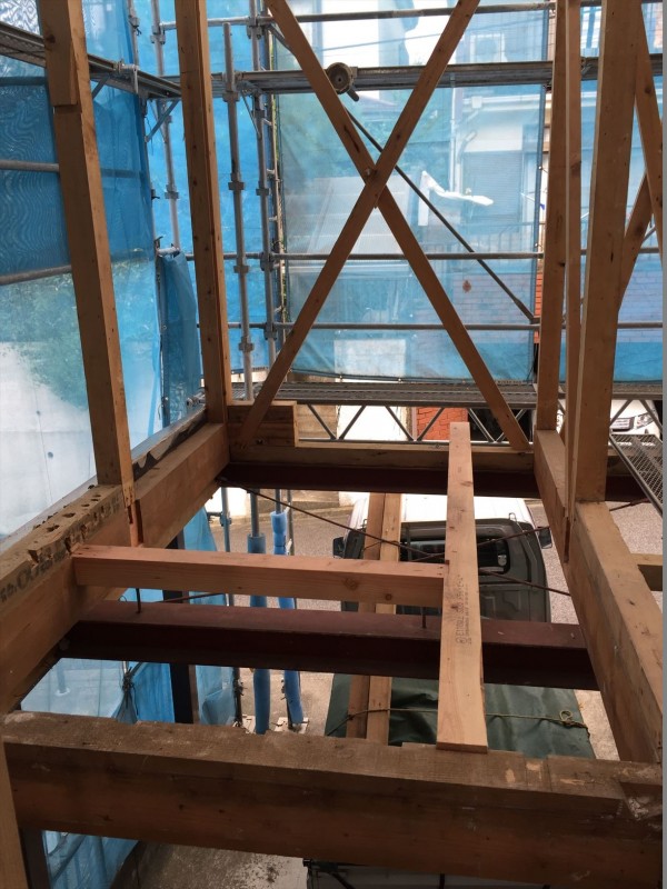 今回は屋根残しのフルスケルトン工事なので普段に比べて